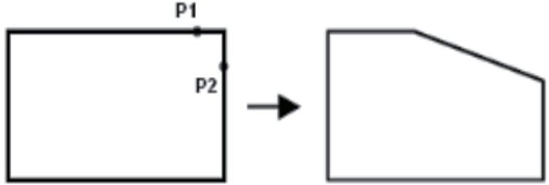 倒角(CHAMFER)命令主要用於切除物件的邊角。您可以設定切除距離與角度的方式作倒角。