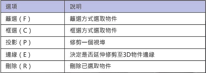 [籬選(F)/框選(C)/投影(P)/邊緣(E)/刪除(R)/復原(U)]/<選取物件至 修剪 或 按shift選取至 延伸> :