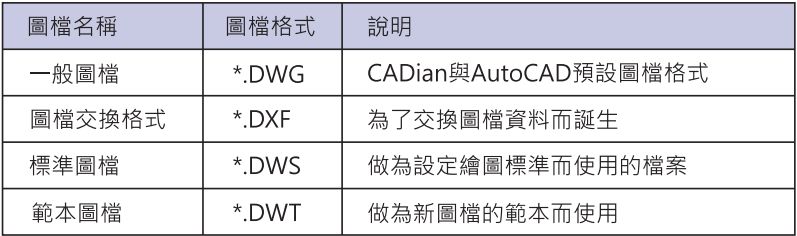 除非使用者變更儲存格式,CADian圖檔預設儲存格式為DWG,DWG檔名最多可達256個字元。