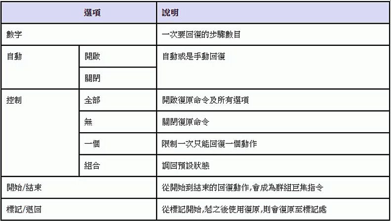 9-7 命令中的復原選項